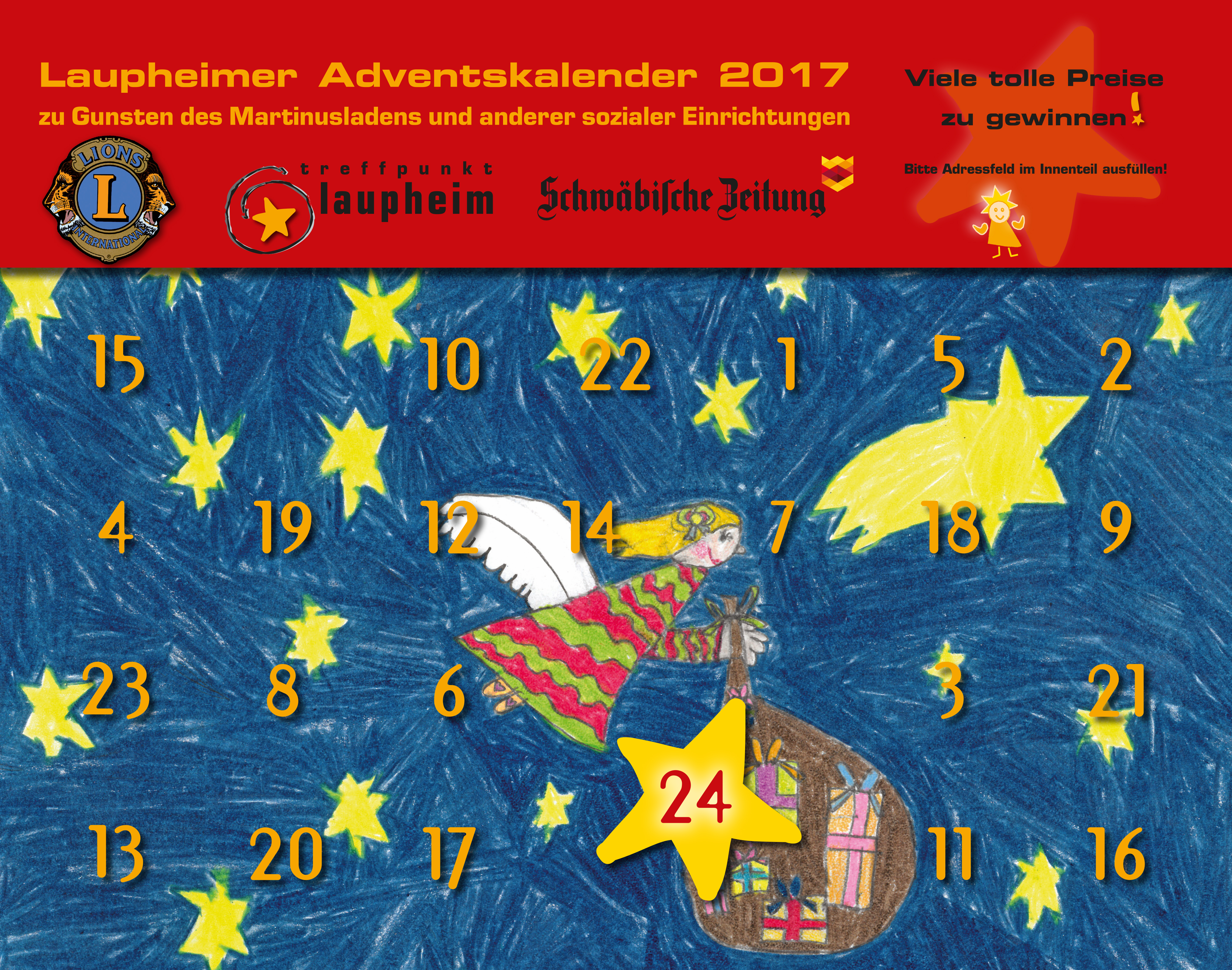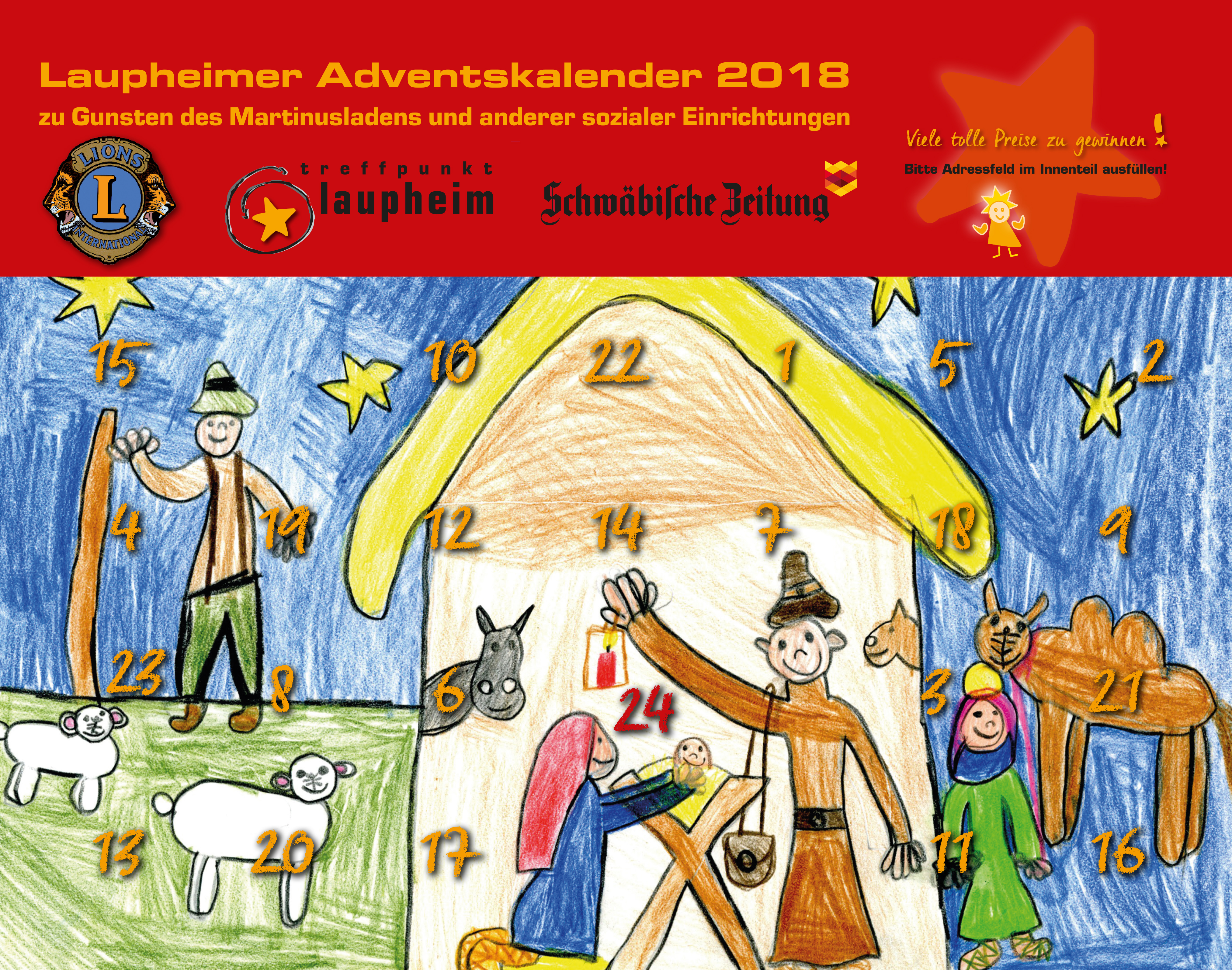 An Heiligabend warten als Hauptpreis 500 Euro in bar hinter dem Türchen, gestiftet von den Mitgliedern des Lions-Clubs. Auch der Kalender selbst eignet sich hervorragend als kleines Geschenk.